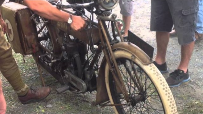 It is a 1917 triumph (model H) and was used by the British Army medical cor. during WW1 and that's me showing how it works. this was at the Jacktown engine meet.
